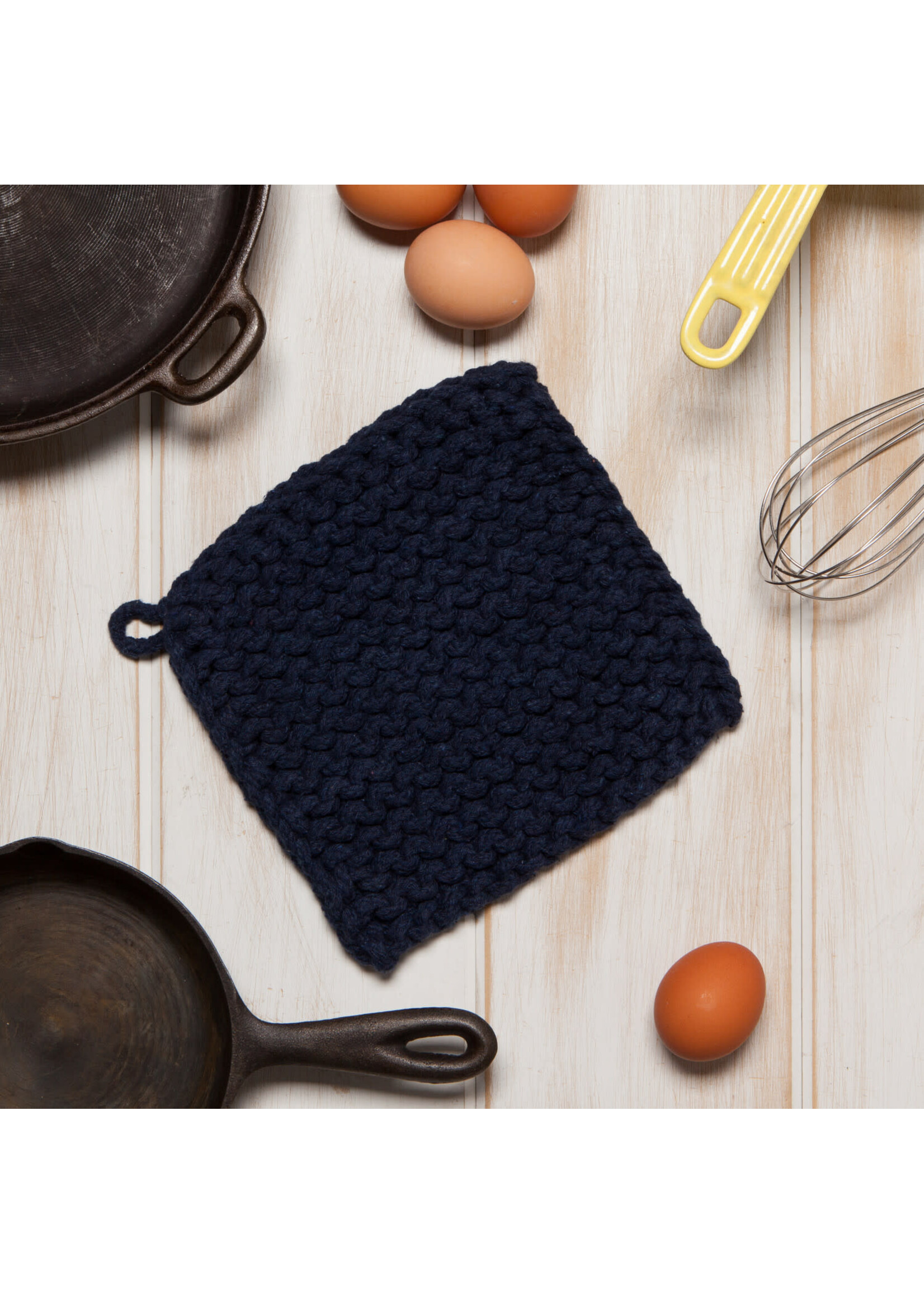 This textured potholder is made by hand in an array of appealing yarn colors. It does double duty as a trivet and adds tactile interest by the oven or on the table.